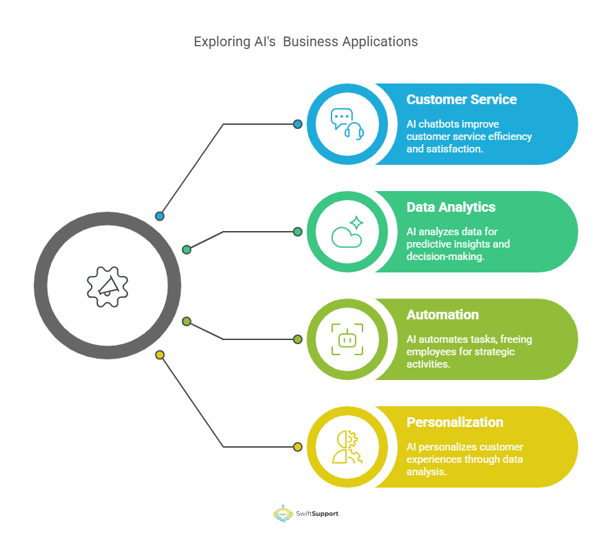 AI helps businesses offer personalized experiences to their customers. By analyzing customer data, AI can recommend products, tailor marketing messages, and provide personalized content.